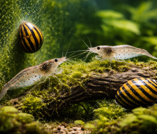 Grønne ruder og alger i akvariet behøver ikke kemikalier. Fisk, rejer og snegle kan holde algerne nede – helt naturligt.