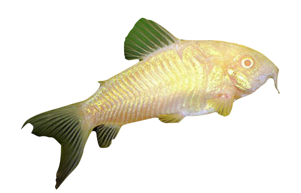 Albino-variant med lys krop og røde øjne; kræver blødt, sandet bundsubstrat for at beskytte følsomme skægtråde; velegnet til selskabsakvarier; fodres med bundfoder, små pellets, frosne og levende fødeemner