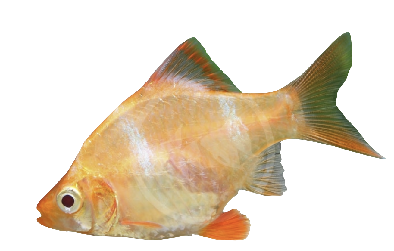 Albino-opdrætsvariant med lys krop og rødlige finner; kræver god svømmeplads; velegnet til akvarier med robuste fisk; fodres med tørfoder, frossen og levende føde