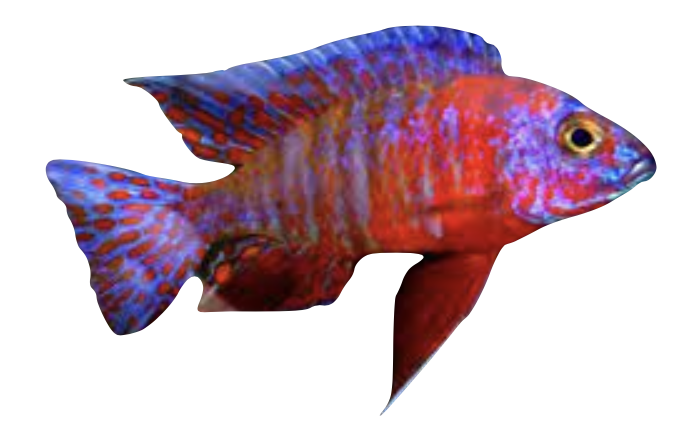 OB-farvevariant, trives bedst i hårdt og basisk vand, holdes med andre rolige Malawi-arter