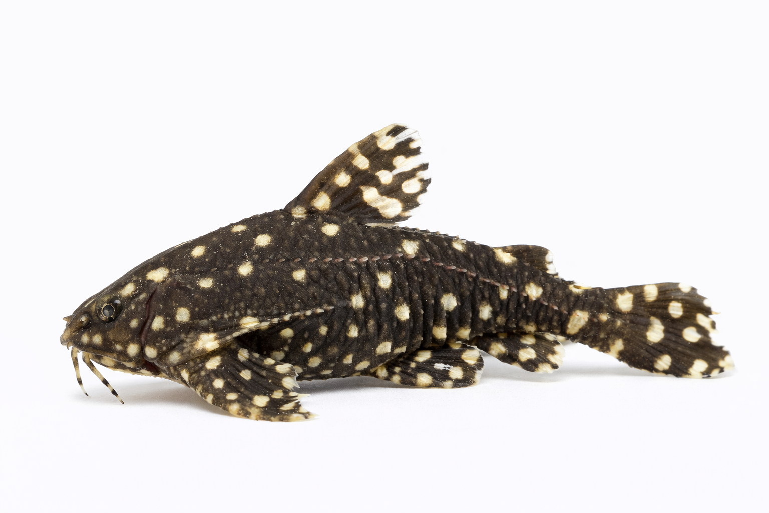 Karakteristiske hvide pletter på mørk/brun krop; skal have skjul som rødder, huler eller sten; robust og velegnet til større selskabsakvarier; kan spises med småfisk, så bør holdes med fisk af passende størrelse