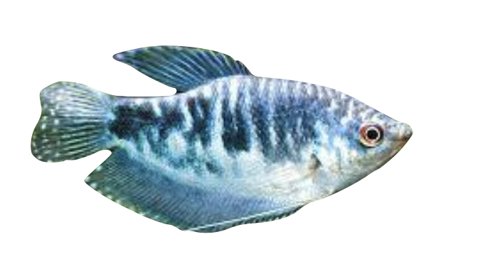 Marmor- eller cosbyfarvet variant med uregelmæssigt blå/sort mønster; robust og hårdfør art; har labyrintorgan og kan tage ilt fra overfladen; fodres med tørfoder, frossen og levende føde