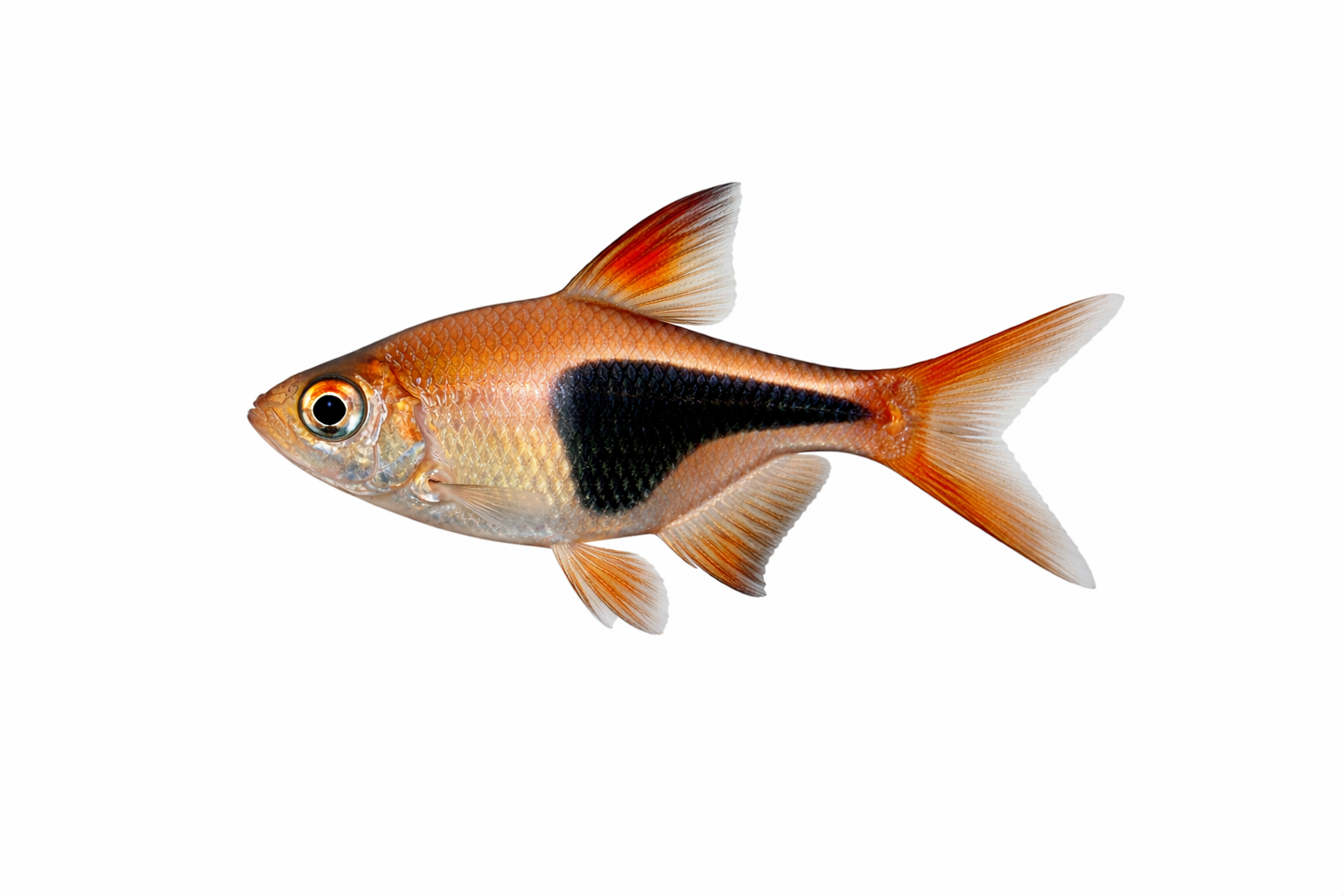 Kendetegnet ved den karakteristiske sorte kileformede plet på kroppen; velegnet til selskabs- og planteakvarier; foretrækker let surt og blødt vand; fodres med tørfoder, frossen og levende føde