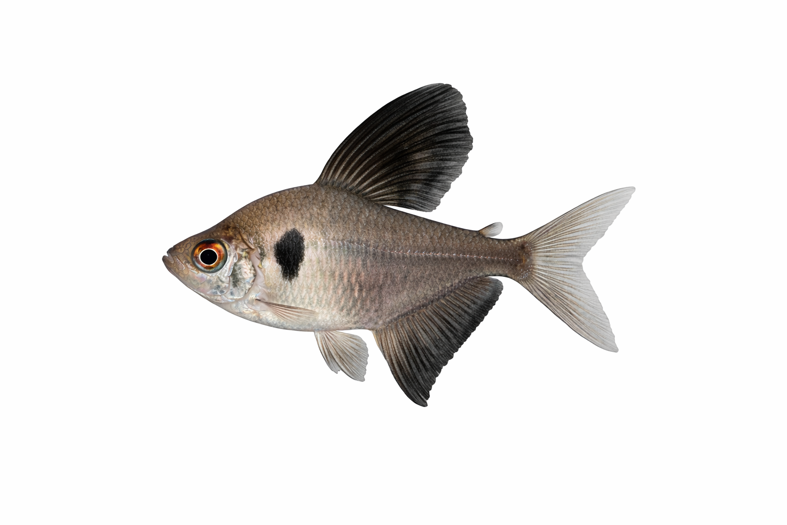 Kendetegnet ved mørk kropsfarve og sort plet bag gællelåget; hanner har høj, sort rygfinne; velegnet til selskabs- og planteakvarier; fodres med tørfoder, frossen og levende føde