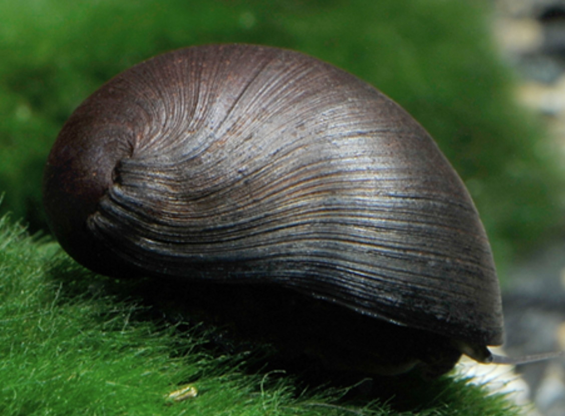 Kalkholdigt vand hjælper med at bevare skallen; karakteristisk mørk/brun til sort skal med mønstre; populær algebekæmper i nano- og selskabsakvarier; lægger æg på hårde overflader, men æggene kræver brakke eller saltvand for at udvikle sig
