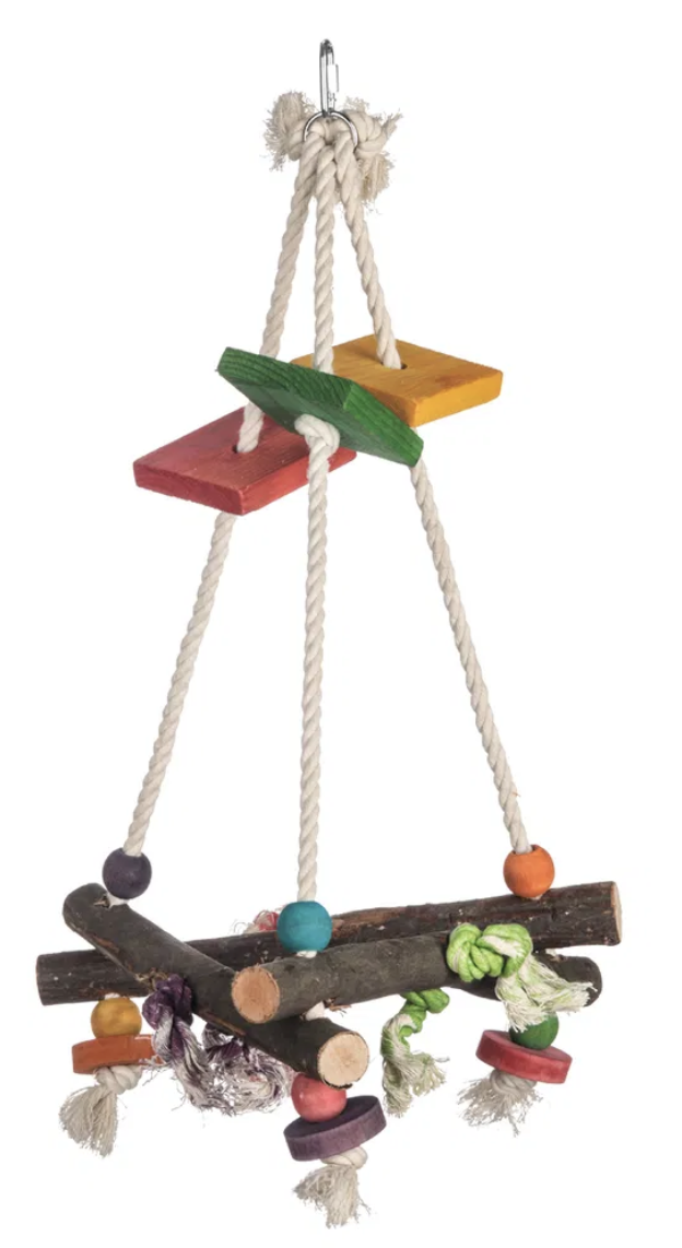 Giv din papegøje timevis af sjov og mental stimulering med dette spændende Pyramid-legetøj. Det store design på hele 53 cm i højden kombinerer farverige reb og knuder, som inviterer til at blive bidt, klatret på og undersøgt.