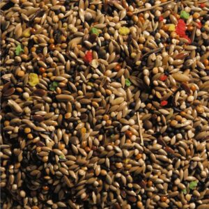 Kanariefrø, afskallet havre, hvid hirse, gul hirse, ryps, rød hirse, hørfrø, niger hirse, hamp, tilsat æggesnack