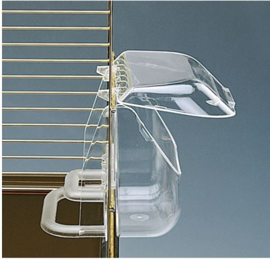 Vand, foderskåle og foder pincetter.