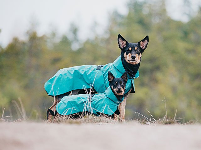 Både materiale og syninger er vandtætte, blot du sørger for at jakken sidder godt til på din hund både omkring maven og omkring halsen.