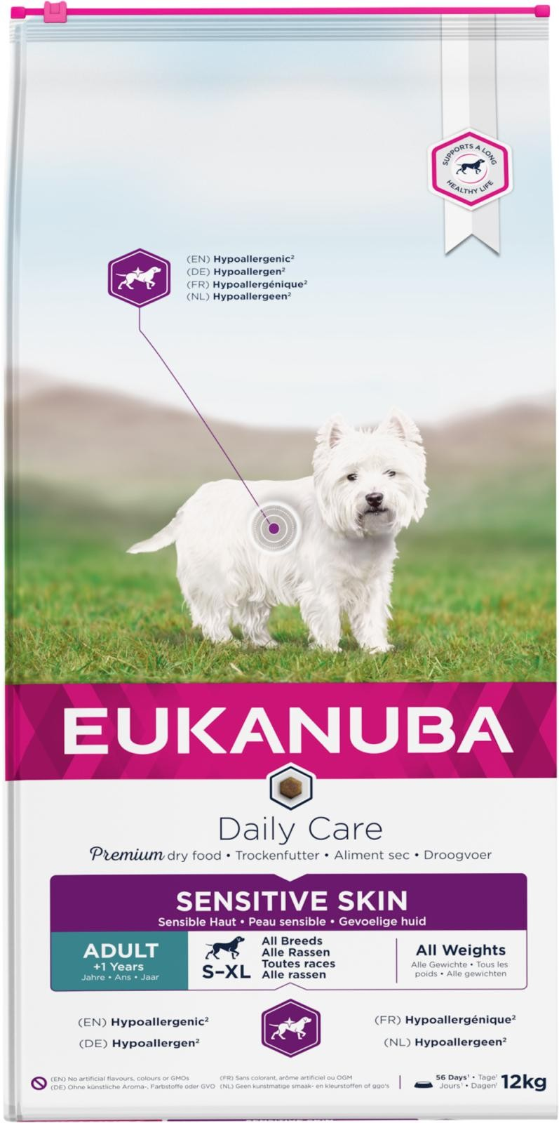 DAGLIG PLEJE FOR SART HUD følger det samme princip. Giv først din hund dette foder for at hjælpe med at give den en sund hud og pels, og fortsæt så, selv om dens pels er blank og skinnende, med at give den dette omhyggeligt udviklede foder til Daglig pleje for sart hud for at bevare dette pragtfulde udseende. Bliv ved med at give den det foder, som bekommer hunden vel, i stedet for at give den det gamle foder.