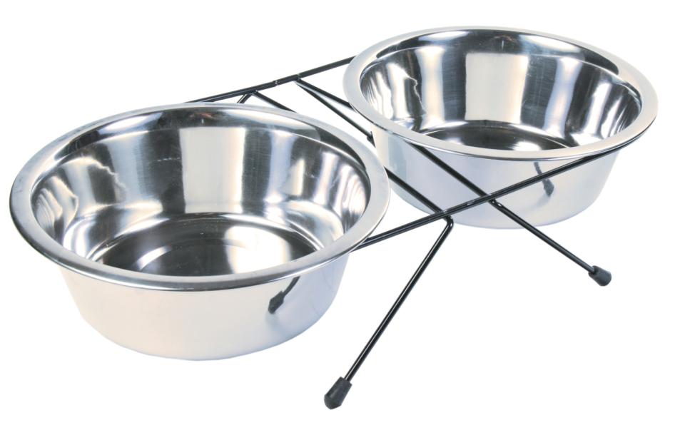 Denne stander med stålskåle tilbyder praktiske og holdbare spisemuligheder til dine kæledyr. Sættet består af to rustfrie stålskåle monteret på et sort metalstativ, der er pulverlakeret for ekstra holdbarhed. Skålene er udstyret med skridsikre gummifødder, der sikrer, at de forbliver stabile under brug. Produktet inkluderer en reserveskål (art.nr. 24840) og alle skålene er egnet til opvaskemaskine, hvilket gør rengøringen nem og bekvem.