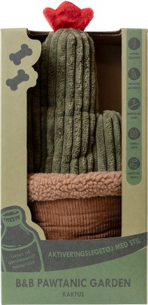 Legetøj og snusetæppe, forklædt som en smuk og sjov plante. B&B Pawtanic snuseplante, ligner en dekorativ potteplante, men den gemmer på en kreativ overraskelse. Planten kan nemlig foldes ud til et stort snusetæppe, fyldt med lommer, folder og gemmesteder. Alt sammen noget, som stimulerer din hunds naturlige søgeinstinkt.