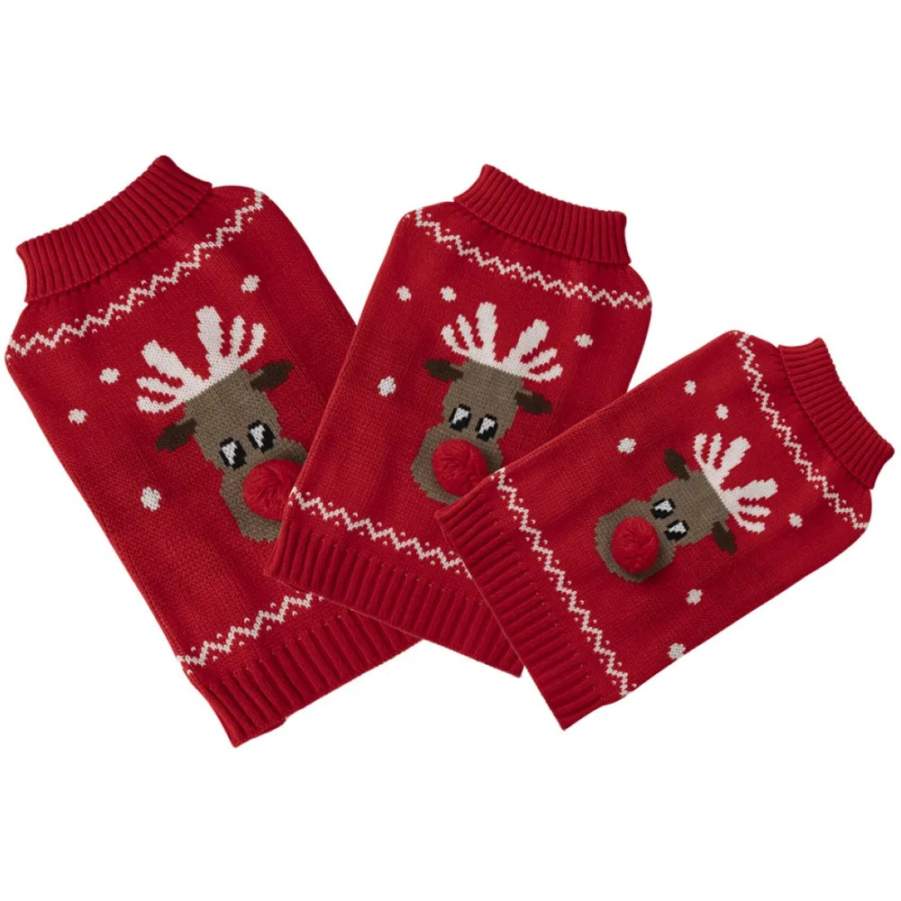 Julesweater til hunde, med charmerende rensdyrmotiv.