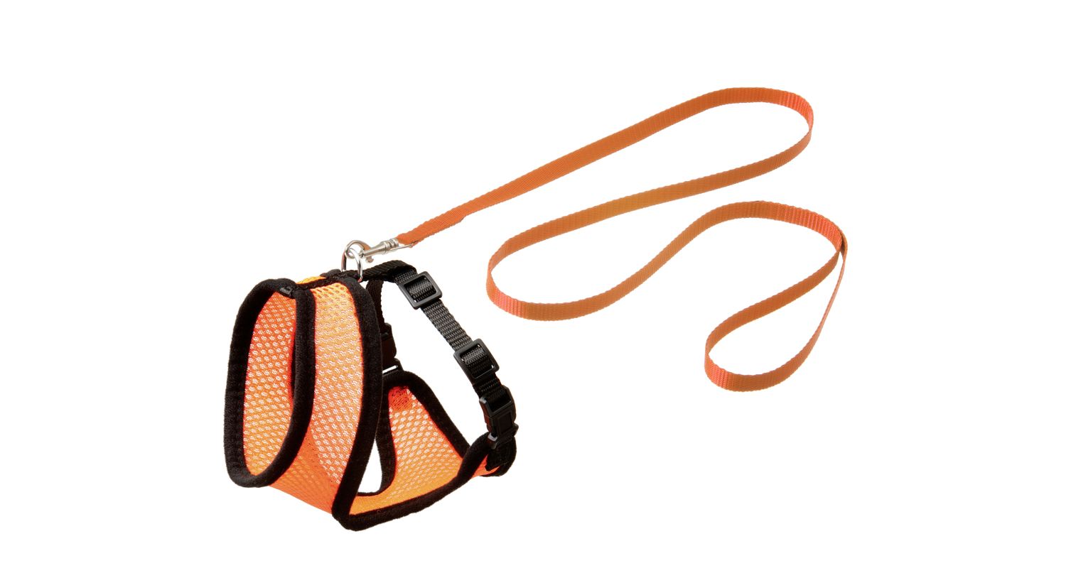 Holdbar killinge sele i orange og sort nylonmateriale medfølgende snor. Selen kan justeres og har klikspænder så den er nem at få af og på.