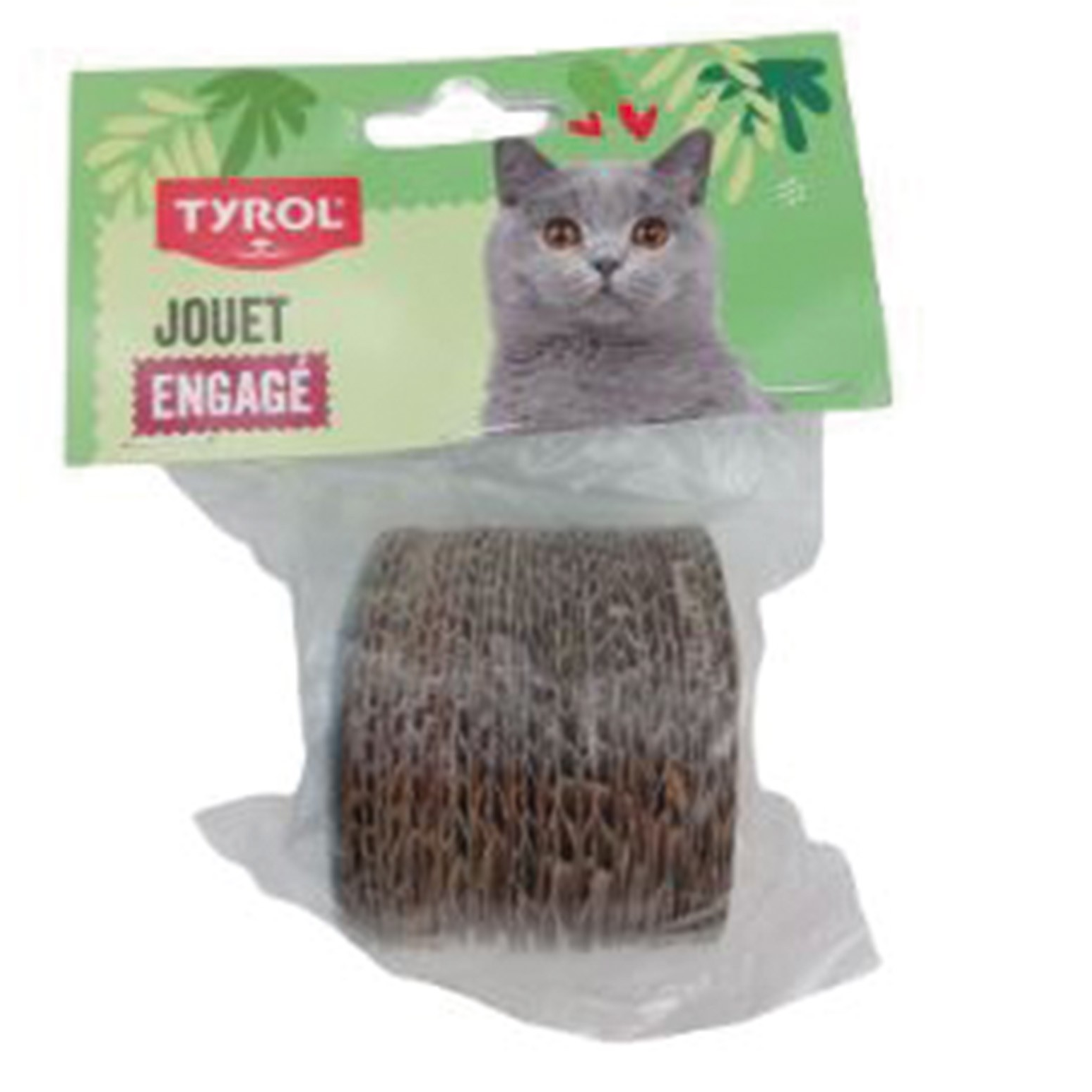 (Kattelegetøj lavet af genbrugsstof og pap.)
